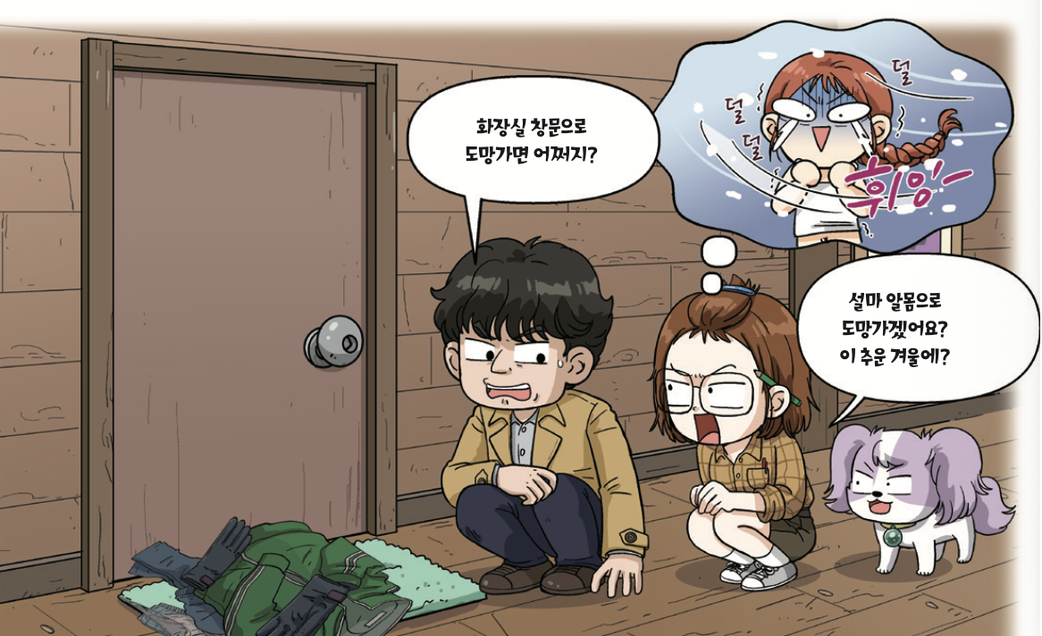 “어쩔 수 없잖아요. 문을 부술 수도 없고.”