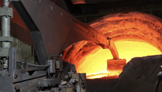 끓는 쇳물 속의 불순물을 걸러내는 로봇팔.