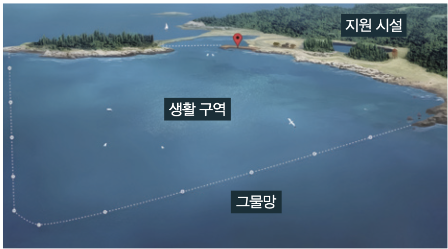 이런 이유로 ‘해양 생추어리’가 대안으로 떠올랐어요. 해양 생추어리는 아쿠아리움에 살던 생물들이 바다와 비슷한 환경에서 살아갈 수 있도록 만든 보호 공간이에요. 아쿠아리움과 달리 물 온도와 깊이, 빛의 세기 등 환경이 바다와 비슷해 고래류에게 알맞죠.