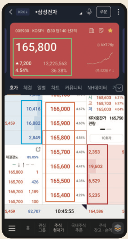 호가 : 주식을 사고팔고 싶은 사람들이 제시한 가격.