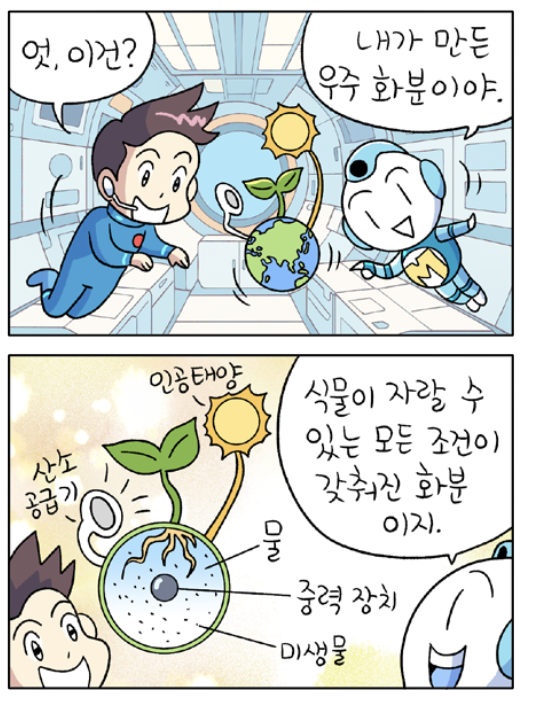 우주에서는 농사를 짓기 쉽지 않아요. 지구와는 다른 특수한 환경이기 때문이에요. 중력이 거의 없는 미세 중력의 환경에 물이 부족하고, 빛에너지가 너무 세거나 적어서 곡물이 자라기 어려워요. 더 자세한 이유도 알고 싶다면 영상을 끝까지 보세요.