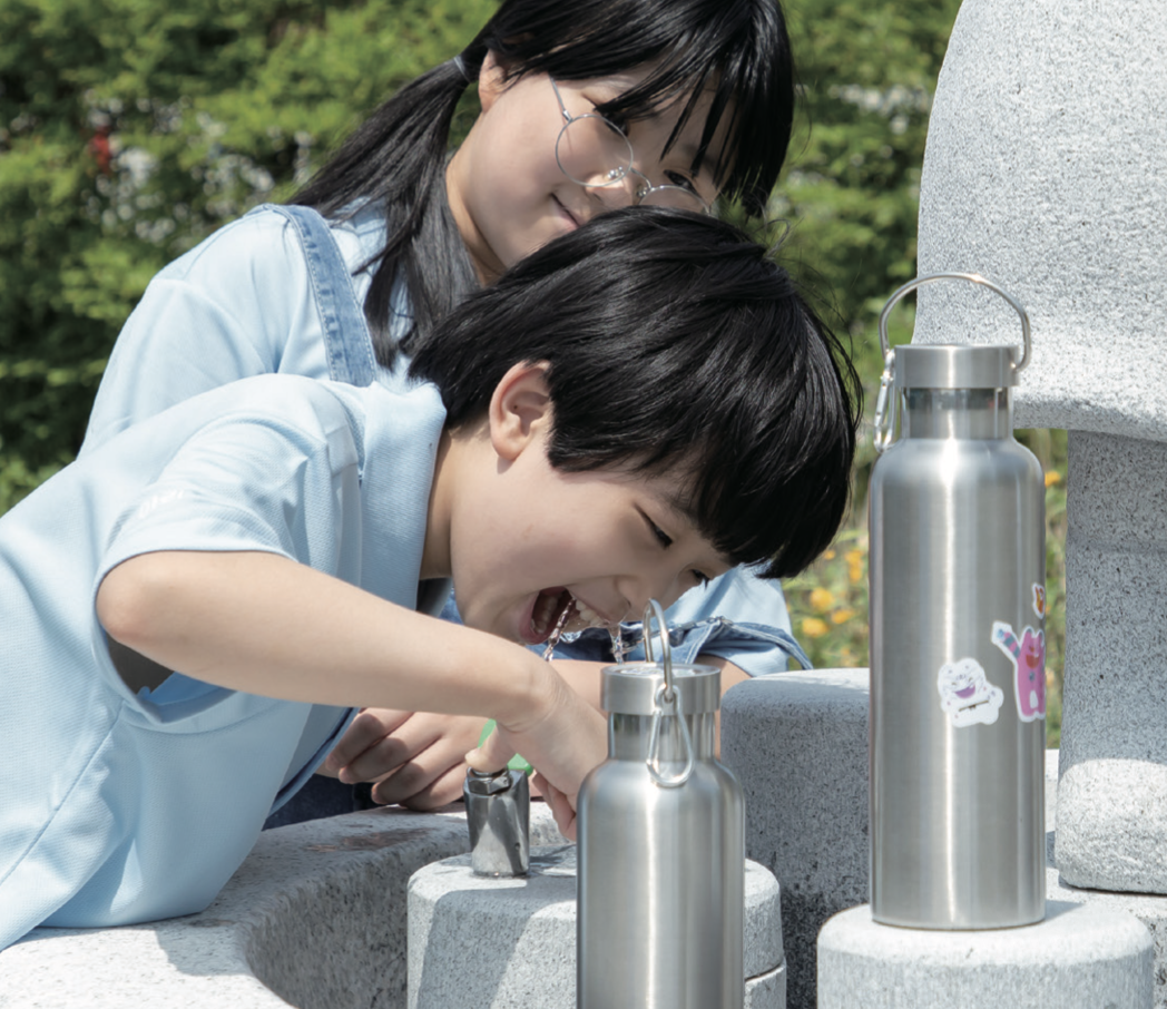 학교나 근처 아리수 음수대에서 텀블러에 물을 받아 마셔 보세요. 페트병이나 플라스틱 컵 대신 텀블러를 사용하면 환경 보호에도 도움이 된답니다.