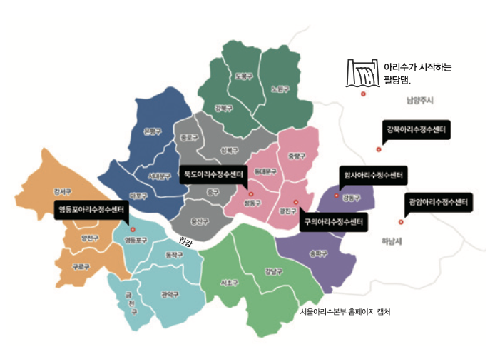 서울시를 가로지르는 한강 물을 퍼올려 아리수정수센터로 보낸다.