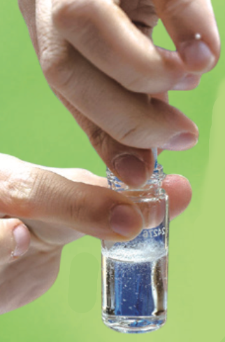 물에 적정량의 정수처리 약품을 넣고 섞는다.