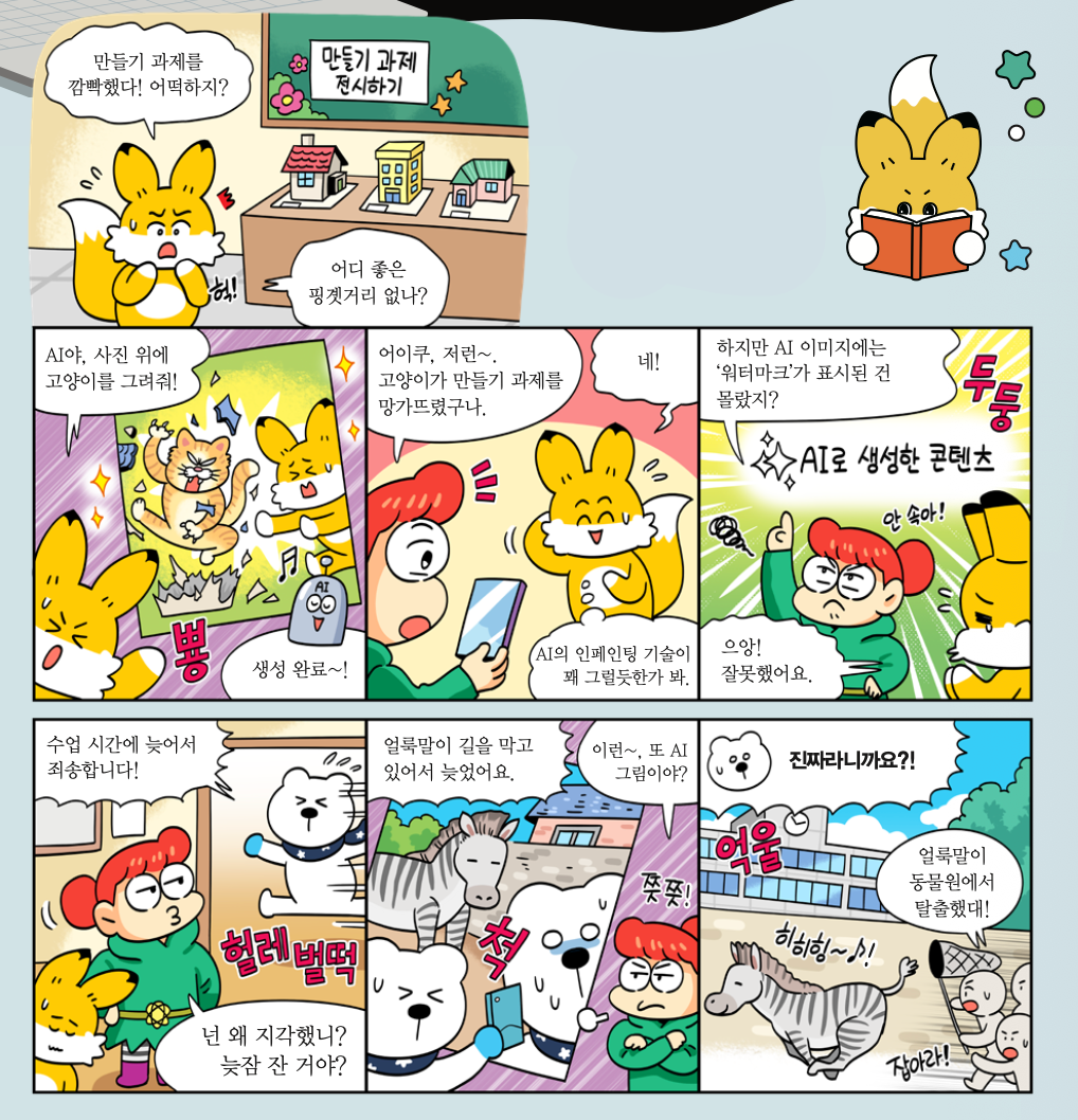 사진을 있는 그대로 믿지 않는 디지털 미디어 문해력도 길러야 합니다. 디지털 미디어 문해력이란 정보의 진짜와 가짜를 구별하고, 합리적으로 판단하는 능력입니다. 이 사진이 누군가에게 피해를 주지는 않을지, 사실이 아닌 걸 진짜처럼 속이는 건 아닌지 의심하고 스스로 질문하는 습관을 들여 보세요.