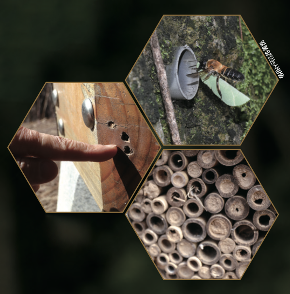 수벌과 짝짓기를 한 어미 벌은 둥지를 고르고 알을 낳은 다음, 어린 벌이 먹을 꽃가루를 뭉쳐 넣어 둔 뒤 입구를 막고 떠나요. 어미는 어디선가 생을 마감하지만, 구멍 안에선 부화한 어린 벌이 먹이를 먹고 성충으로 자라 세상에 나옵니다. 자신이 태어난 비하우징으로 돌아와 다시 알을 낳기도 하지요. 조 대표의 비하우징에도 ‘애야’라고 이름 붙인 애가위벌의 후손이 4대째 살고 있어요.