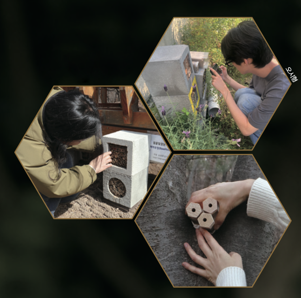 야생벌은 대부분 한 마리씩 흩어져 살고 활동 기간도 1~2개월 정도로 짧아 관찰이 쉽지 않아요. 서식지가 사라지고 개체 수가 줄어들어도 변화를 파악하기 어렵죠. 그래서 조 공동대표와 같은 시민과학자들은 비하우징을 통해 주변의 야생벌을 관찰합니다. 2년 전 학교 근처에 비하우징을 설치한 벌볼일있는사람들 회원 오시형 학생은 “벌을 가까이서 보면 몸에 난 털과 뾰족한 꼬리 등이 귀엽다”며 “나무 대롱이나 페트병을 이용해 어린이도 쉽게 비하우징을 만들 수 있다”고 말했어요.