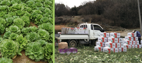 기자는 지난 3월 5일, 진도 봄동을 만나기 위해 진도군에 다녀왔어요. 버스로 약 5시간을 이동해 도착한 진도군은 곳곳이 초록빛으로 가득했어요. 봄동밭에선 봄동이 일정한 간격으로 심겨 있었어요. 봄동의 향도 향긋했지요. 농민들은 봄동을 하나씩 손으로 수확하며 분주하게 움직이고 있었습니다. 수확된 봄동은 바로 상자에 담겨 트럭에 실렸어요. 봄동은 시장이나 마트 등으로 판매돼 밥상 위에 오르게 됩니다.