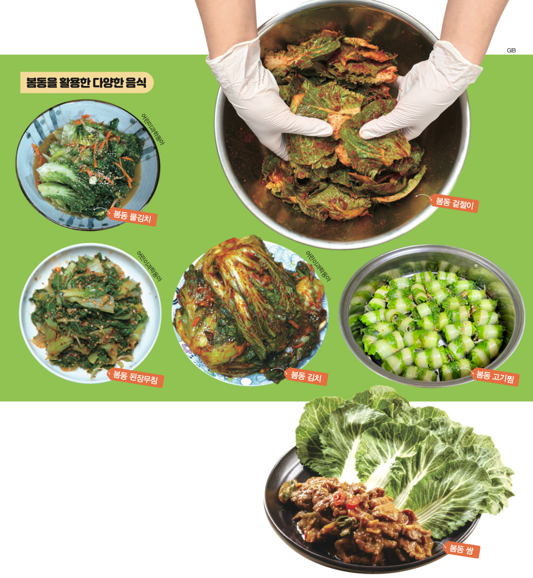 당이 많아지면 봄동의 맛도 달콤해집니다. 덕분에 봄동은 요리에도 다양하게 쓰일 수 있어요. 대표적으로 봄동 겉절이, 봄동 된장무침, 봄동 김치, 봄동 전 등이 있습니다. 봄동을 판매하는 으뜸농원 김옥석 대표는 “대부분 봄동 겉절이를 해 먹지만 봄동은 활용도가 높은 채소”라고 말했어요. 또 “봄동의 물기를 제거한 뒤 냉장고에 두면 일주일 정도 신선하게 보관할 수 있다”고 설명했지요.