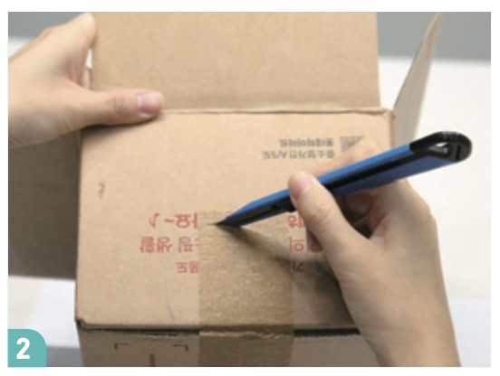 소형 종이 상자, 칼, 가위, 연필 또는 펜, 박스 테이프, 휴대폰, 돋보기