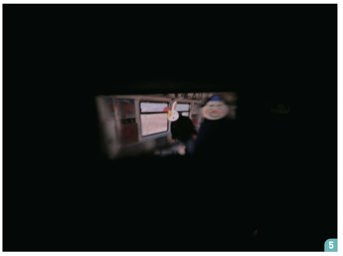 ➔휴대폰으로 재생한 영상이 벽에 크게 나타난다.