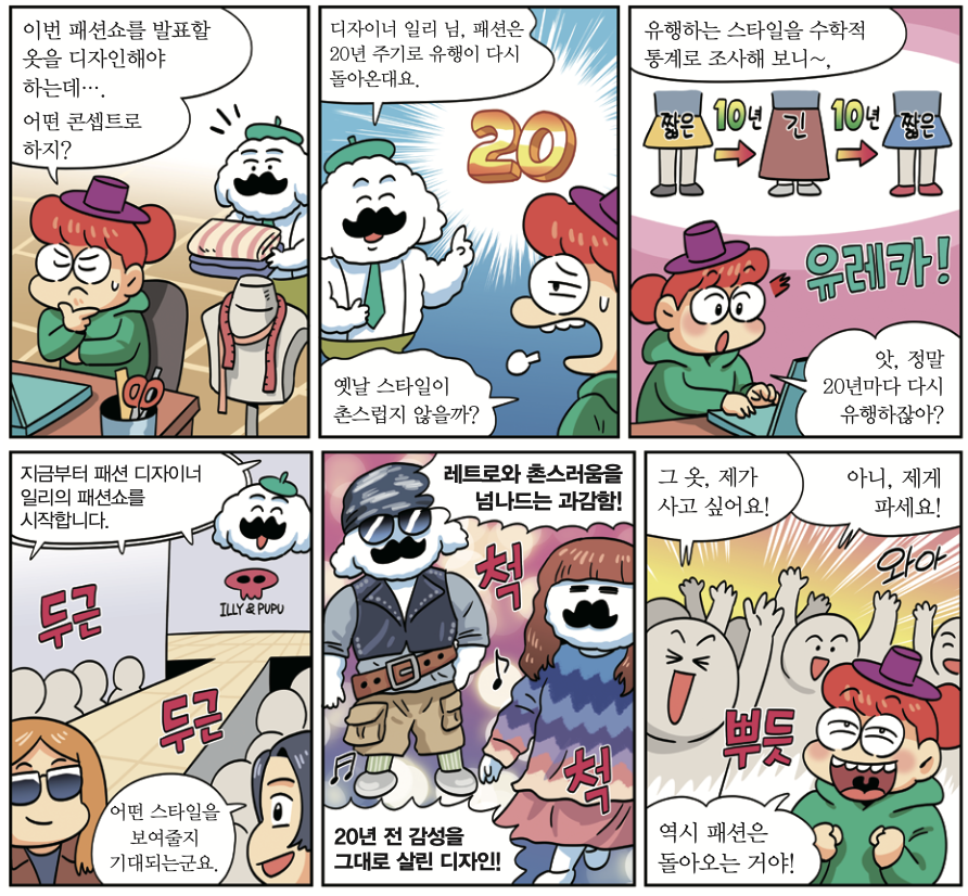 지난 3월 17일, 미국 노스웨스턴대학교 연구팀은 패션의 유행 흐름이 약 20년 주기로 돈다는 연구 결과를 발표했어요. 연구팀은 1869년부터 2023년까지 미국 여성의 드레스 이미지 약 3만 5000장을 모았어요. 그리고 드레스의 길이를 재어서 분석하는 수학적 모델을 만들어 드레스 유행의 흐름을 살폈어요. 그 결과, 드레스의 길이가 22.2년 주기로 바뀌는 흐름을 보였어요. 20년을 기점으로 길이가 짧아졌다가 길어지는 반복 현상이 두드러지게 나타났지요. 연구팀은 “패션 말고도 다른 유행 주기를 살피는 데 수학적 모델을 적용할 수 있다”고 설명했어요.