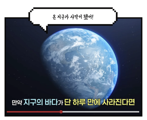 지구의 바다가 사라지면, 지구는 낮에는 뜨겁고 밤에는 추운 극단적인 환경으로 변해요. 바다의 물이 모두 증발해 수증기가 되면, 수증기가 열을 가둬 지구의 온도가 급격히 높아지죠. 지구의 바다가 없어지면 어떤 일이 벌어질까요? 영상에서 확인해 보세요.