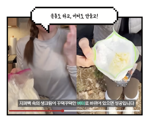 최근 러너들 사이에서 버터런 챌린지가 화제예요. 생크림을 지퍼백에 넣고 달리면, 흔들림 때문에 지방과 액체가 분리됩니다. 그리고 지방이 뭉쳐 버터가 되죠. 버터런 챌린지의 준비물과 성공 비법이 궁금하다면 영상에서 살펴보세요!