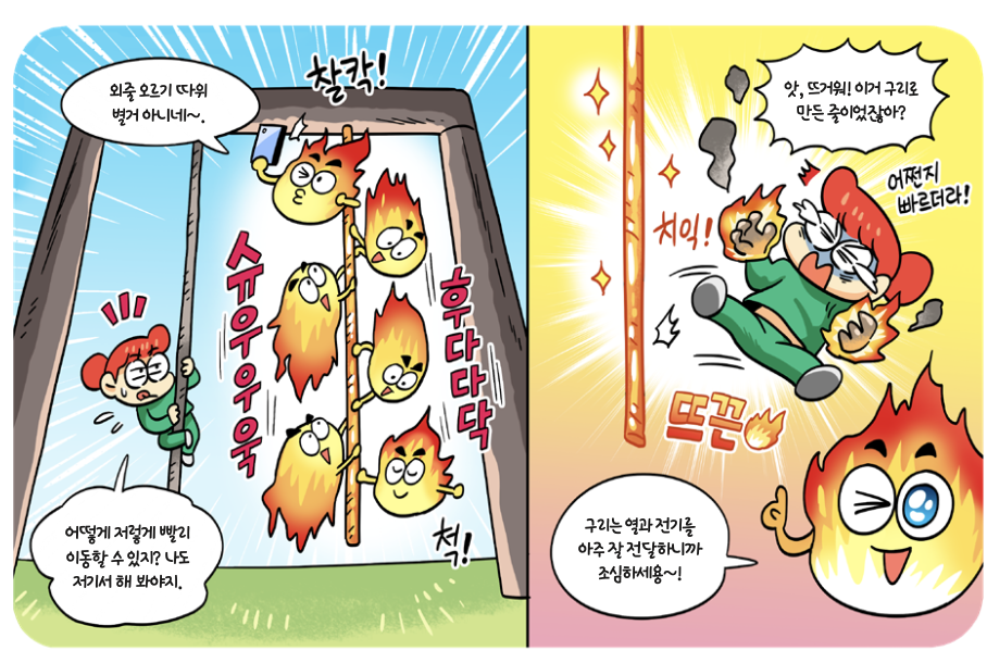 또, 구리는 모양을 쉽게 바꿀 수 있어요. 면심입방구조는 원자들이 층을 이루고 있기 때문에 외부에서 힘을 주면 원자층이 미끄러지듯 움직입니다. 이때 원자의 배열은 그대로 유지되고 모양만 바뀌어요. 즉, 구조가 깨지지 않고 다른 형태로 유지될 수 있는 거예요. 이 덕분에 구리는 길게 늘이거나 넓게 펼 수 있지요.