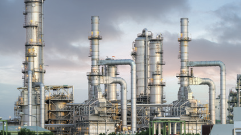 땅에서 뽑아낸 원유를 저장 탱크에 보관한다.