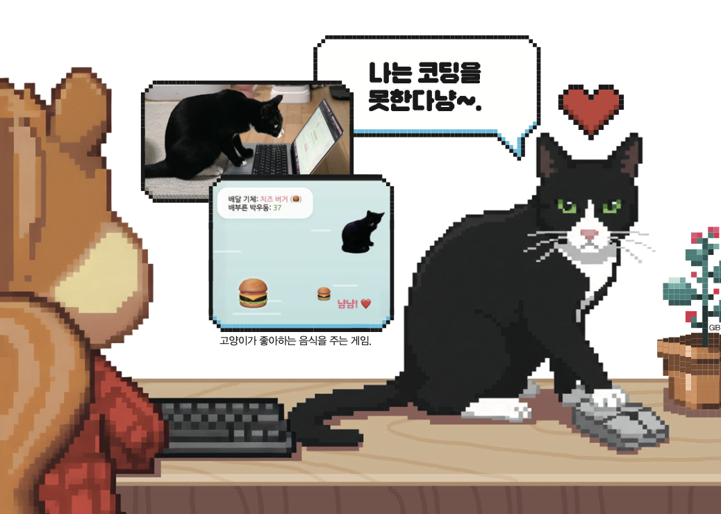 물론 AI가 모든 프로그램을 만들 수 있는 건 아니에요. 사람이 명확한 의도를 가지고 프로그램을 지시해야 하지요. 이를 알아보기 위해 기자는 고양이에게 바이브 코딩을 시켜 봤어요.