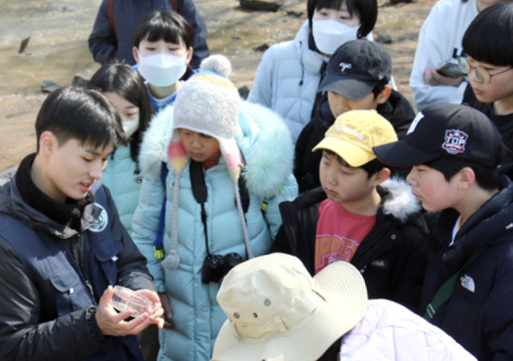 지구사랑탐사대(지사탐) 대원이 묻자, 전북대학교 식물의학과 이디엘 연구원이 답변했어요. 3월 21일, 인천 을왕리해수욕장에서 등각류를 주제로 한 지사탐 현장 교육이 진행됐어요. 지사탐 14기의 첫 현장 교육으로, 오전·오후 팀을 합쳐 60명의 대원이 참가했어요.