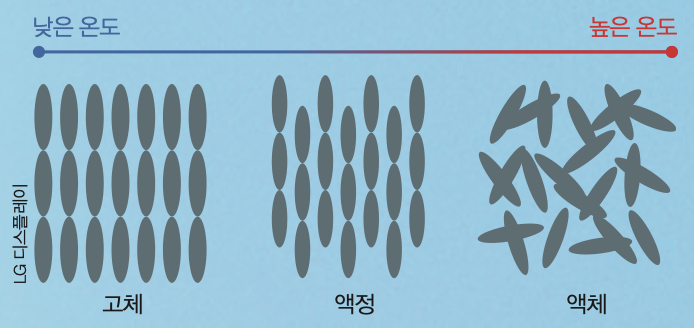 고체, 액정, 액체의 분자 배열