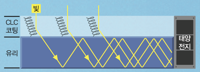 기존의 창문형 태양광 발전기는 빛이 사방으로 퍼졌어요. 그래서 네모난 창문의 네 가장자리 모두에 각각 태양전지를 달아야 했죠. 반면 연구팀처럼 유리창을 CLC로 코팅하면 빛이 모이는 한쪽 끝에만 태양전지를 달면 돼요. 이렇게 하면 필요한 태양전지 수가 4분의 1로 줄어들어 경제적이에요.