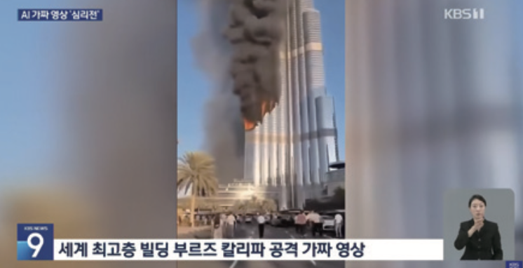 ‘부르즈 칼리파’ 빌딩이 공격당했다는 가짜 영상. AI로 조작된 영상이다.