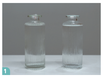 ➍ 반으로 나뉜 장미의 줄기를 두 개의 유리관에 각각 꽂는다.