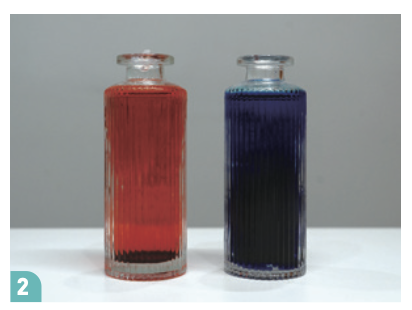 ➋ 각 유리관에 서로 다른 색의 식용 색소를 넣고, 막대로 젓는다.