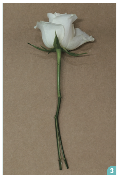 ➌ 흰 장미의 줄기를 칼로 반으로 자른다.