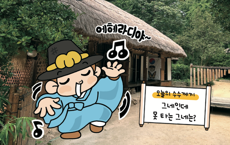 한복을 입었더니 말투가 절로 이렇게 되는구나! 그런데 이곳에 탈 수 없는 그네가 있다 하니…. 자, 함께 찾아 보세, 끼끼!