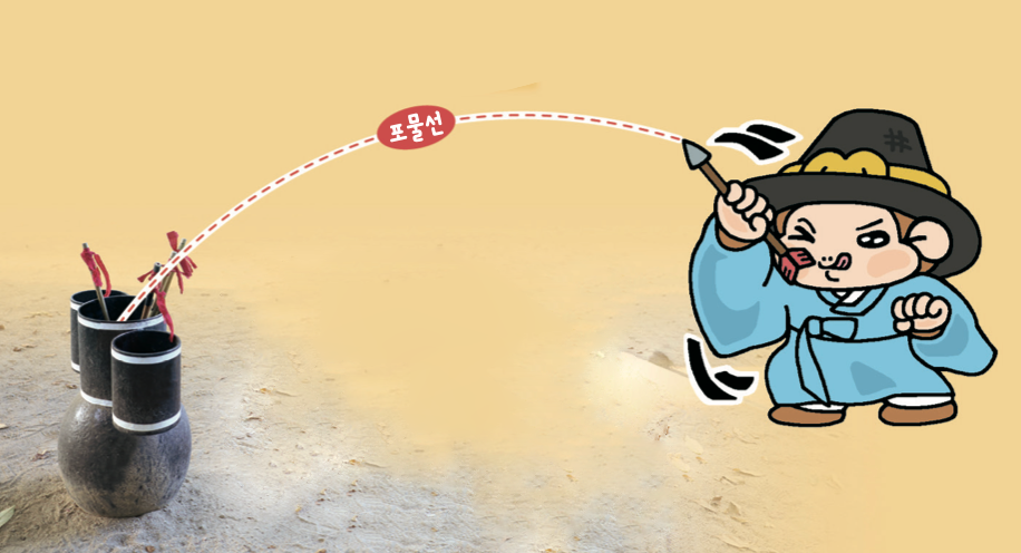 투호 화살을 던지면 위로 올라갔다가 아래로 떨어지는 곡선을 그리며 날아가. 이런 곡선을 ‘포물선’이라고 해.