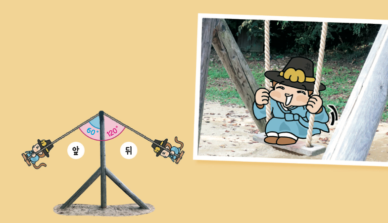 앞쪽, 뒤쪽 각도를 합치면 무려 120°나 되는 셈이지! 그런데…, 이건 너무 신나는 그네잖아? 못 타는 그네는 어디에 있을까?