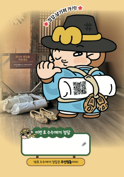 아직도 ‘못 타는 그네’는 안 보인다고? 엣헴, 내 괴나리봇짐을 봐. 옛사람들이 길을 떠날 때 메던 짐인데, 정답과도 관련이 있지. ‘길을 떠나 잠시 머무는 사람’을 뭐라고 할까? 이리저리 다니는 내 모습과 닮지 않았어, 끼끼?