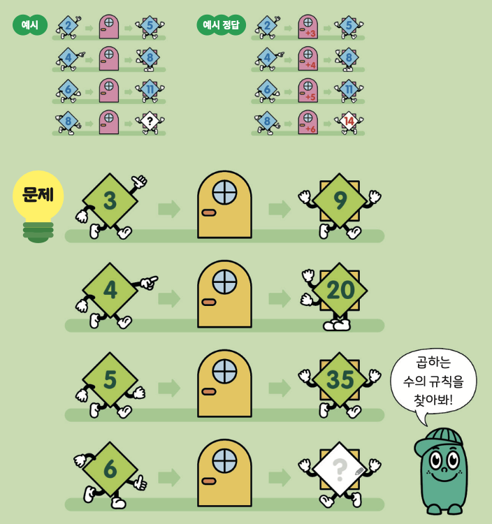 숫자 도형들이 마법의 문을 발견했어요! 이 문을 통과하면 숫자가 변한답니다.