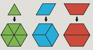 변의 길이가 모두 같고, 각의 크기가 모두 같은 다각형을 정다각형이라고 해요. 정다각형 중 변의 개수가 6개인 도형을 정육각형이라고 하지요. 모양 조각을 사용해서 정육각형을 빈틈없이 채우는 다양한 방법을 알아보세요.