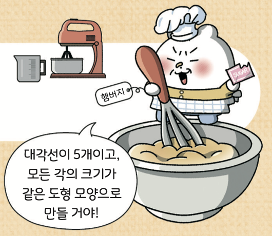 햄버지는 다각형 모양 케이크를 만들고 있어요. 햄버지가 만들려는 케이크는 무슨 모양일까요?