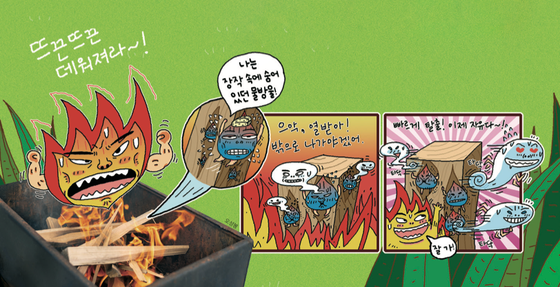 모닥불에서 나는 ‘타닥타닥’ 소리는 나무가 타는 소리가 아니에요.