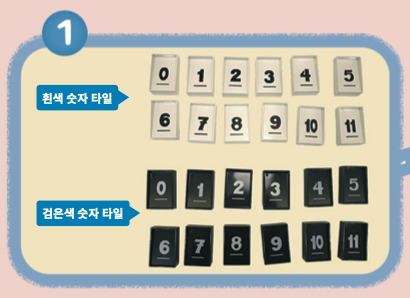 흰색 숫자 타일 12개, 검은색 숫자 타일 12개가 있어요.