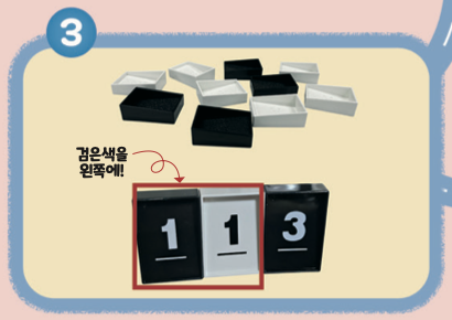작은 수에서 큰 수 순서로 숫자 타일을 놓으면서, 수의 크기를 비교할 수 있어요.