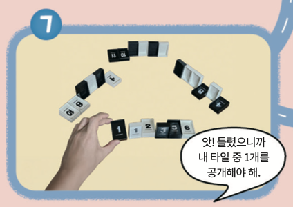 맞히면 상대는 그 타일을 쓰러뜨려 공개하고, 틀리면 자신이 더미에서 가져온 타일을 쓰러뜨려 공개해요.
