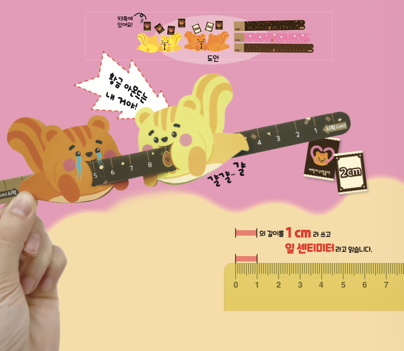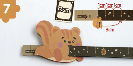 예를 들어, 다람쥐가 2에 있을 때 3cm 카드가 나오면, 5가 적힌 곳까지 움직여요.