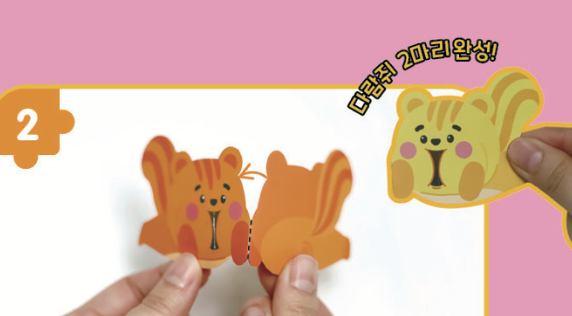 다람쥐 도안 2개를 뜯어 접는 선을 따라 반으로 접어요.
