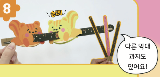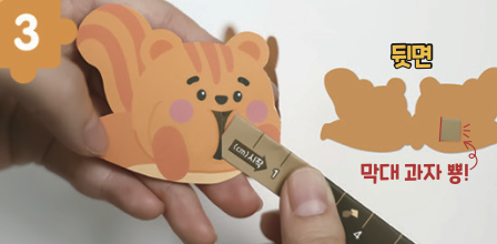 다람쥐 입 속 뚫린 구멍에 원하는 막대 과자를 골라 끼워요.
