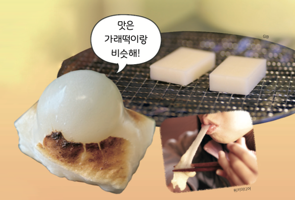 겨울이 되면 일본에서는 떡을 구워 먹어요. 불에 올리면 동그랗게 부풀어 오르지요.