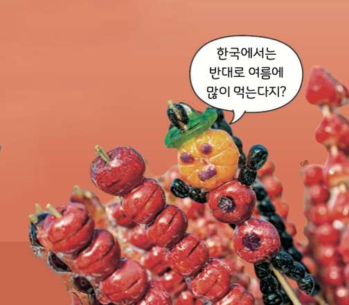 탕후루는 과일에 설탕을 입힌 간식으로, 중국에서는 주로 겨울에 먹어요.