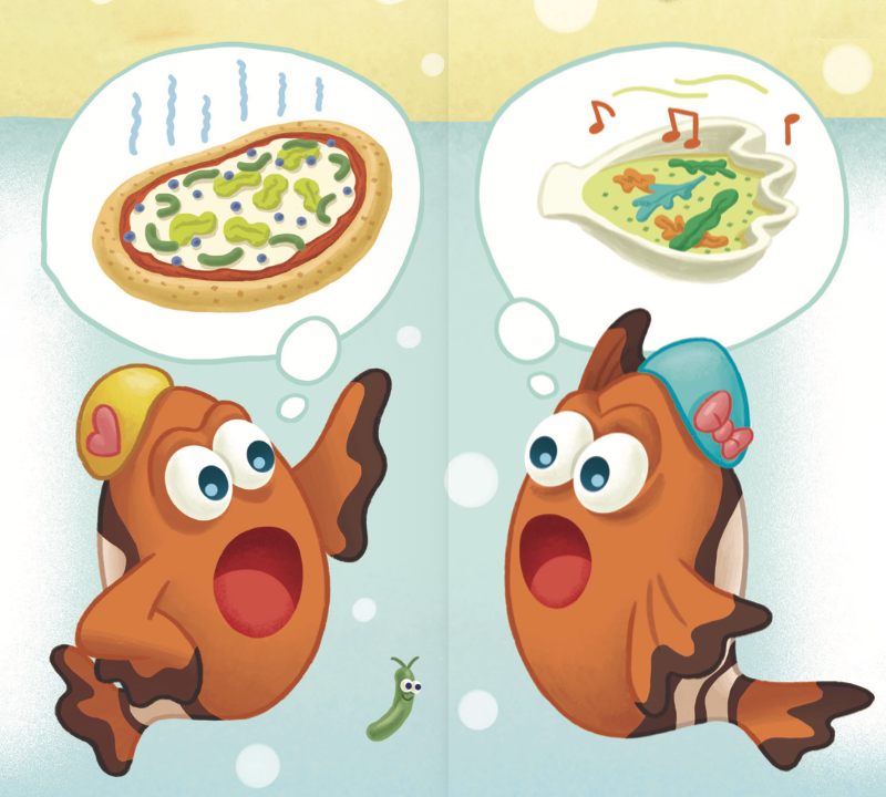 “이거 봐! ‘반짝반짝 플랑크톤 피자’ 막대가 이렇게나 길잖아!”