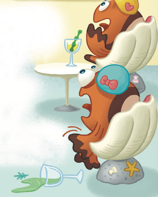 평화로운 객실 안, 해마 왕자가 우아하게 해초 차를 마시고 있었고, 아기 복어들이 모여 뽁뽁 소리를 내며 수다를 떨고 있었지요.