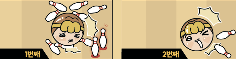 훗, 나 볼링 좀 치는 것 같아! 스트라이크랑 스페어가 계속 나오고 있거든. 스트라이크랑 스페어는 한 회에 핀 10개를 모두 쓰러뜨리는 경우야.