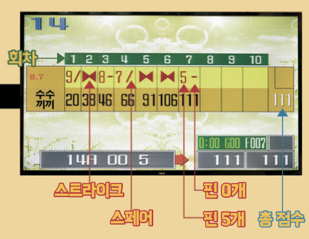 이렇게 볼링을 잘하는데, 보나 마나 내 점수는 엄청 높…, 응? 점수판이 왜 이렇게 복잡하냐, 끼끼! 어떻게 보는 거지?