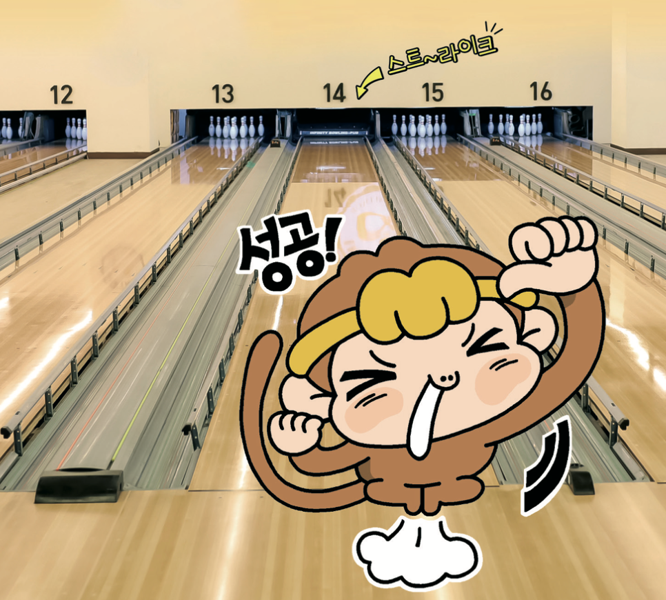 이제 남은 게임도 신나게 즐겨야겠다. 공을 힘껏 굴렸는데, 역시 또 스트라이크야! 난 스트라이크 성공이 제일 좋다니까~! 어때? 사람들이 좋아하는 공이 무슨 공인지 알겠어?!