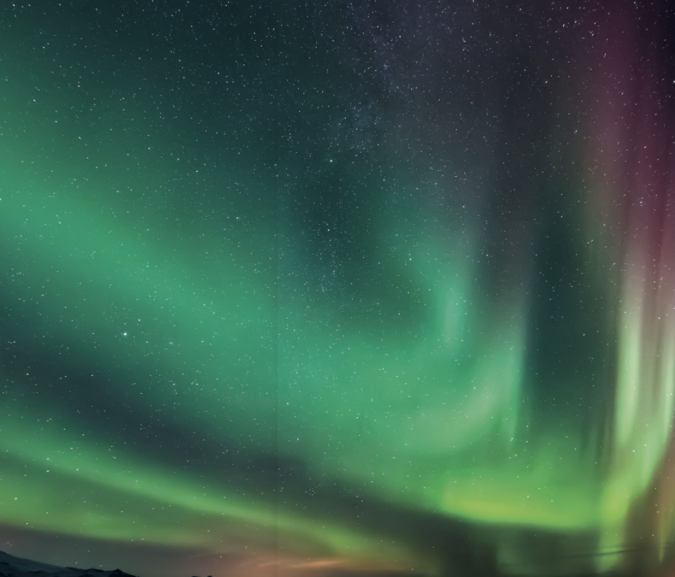 북극과 남극 하늘에서는 아름다운 오로라를 볼 수 있어요! 높이에 따라 주로 보이는 색깔이 다르지요.